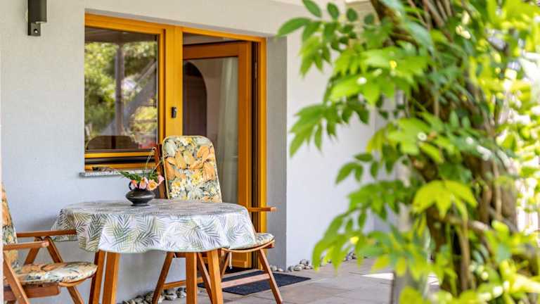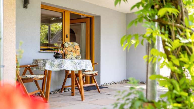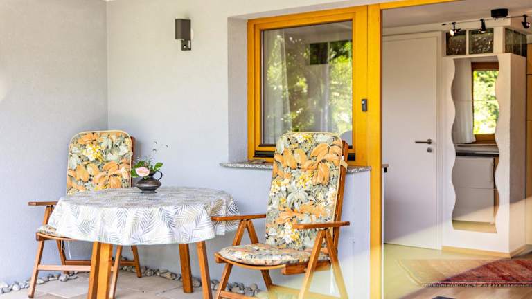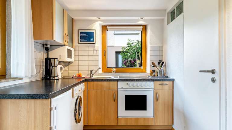 Die Ferienwohnung ist ausgestattet mit einem Schlafzimmer, einem Badezimmer, Bettwäsche, Handtüchern und einem TV mit Satellitenkanälen. Eine voll ausgestattete Küche sowie eine Veranda/Pati mit Blick in den Garten runden das Angebot ab.