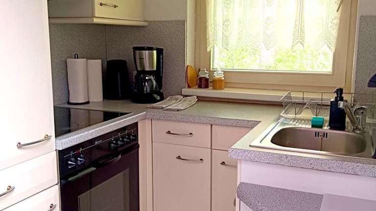 Die Wohneinheiten verfügen über eine voll ausgestattete Küche mit Kühlschrank, Ofen, Kaffeemaschine und Wasserkocher. Es sind keine weiteren Verpflegungsmöglichkeiten vorhanden.