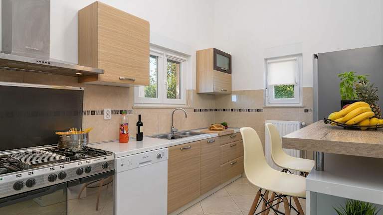 Das Ferienhaus besteht aus 3 separaten Schlafzimmern und einer voll ausgestatteten Küchenzeile mit Kühlschrank und Geschirrspüler. Es sind 3 Badezimmer vorhanden und die Unterkunft bietet Handtücher sowie Bettwäsche an.