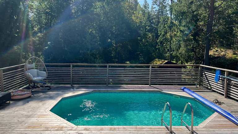 Charmigt hus på Vindö ist eine heimelige Unterkunft mit einem saisonalen Aussenpool und einem einladenden Garten. Die Ferienunterkunft bietet kostenfreies Wifi und einen Blick auf den Garten.