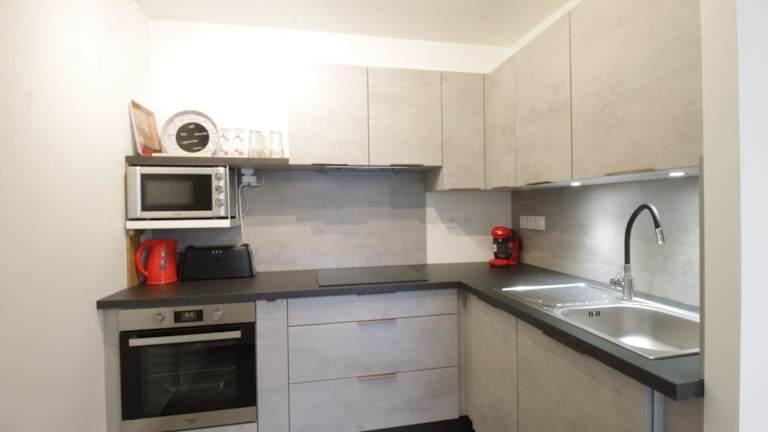 Die Ferienwohnung besteht aus einem Schlafzimmer, einem Wohnzimmer und einer voll ausgestatteten Küche mit Kühlschrank und Kaffeemaschine. Zudem gibt es ein Badezimmer mit Dusche und Haartrockner. Handtücher und Bettwäsche werden bereitgestellt.