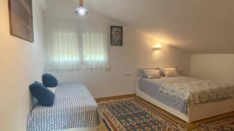 Das Charming apartment in Becerril de la Sierra bietet aufgrund eines saisonalen Aussenpools, eines Gartens und einer Terrasse eine heimelige Atmosphäre. Die Ferienwohnung ist in einem Chalet untergebracht, das aus zwei völlig unabhängigen Häusern besteht. Die Eingangstür zum Gebäude ist gemeinschaftlich, während der Zugang zur vermieteten Wohnung unabhängig ist. Der Pool und der Garten stehen ausschliesslich den Gästen zur Verfügung. Es gibt strikte Regeln gegen Feiern wie Junggesellenabschiede, um die Ruhe der Umgebung zu gewährleisten.