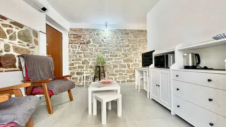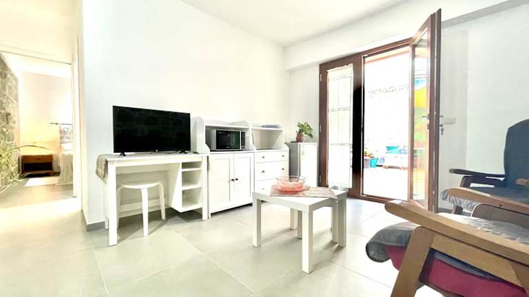 Die Ferienwohnung besteht aus 1 klimatisierten Schlafzimmer und beinhaltet 1 Badezimmer mit Bidet, Dusche und kostenlosen Pflegeprodukten.