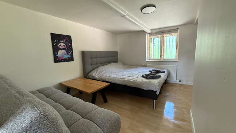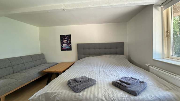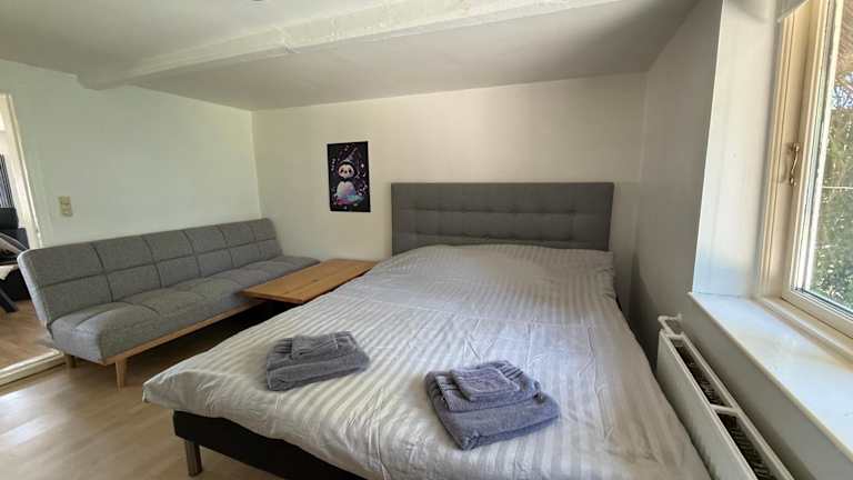 Die Villa verfügt über zwei Schlafzimmer, ein Wohnzimmer und eine voll ausgestattete Küche mit Kühlschrank und Kaffeemaschine. Ein Badezimmer mit Dusche und Badewanne ist ebenfalls vorhanden. Handtücher und Bettwäsche werden bereitgestellt.