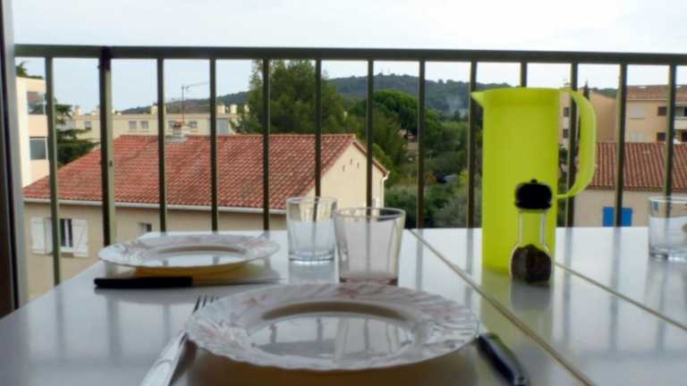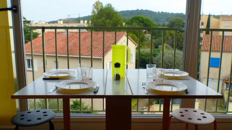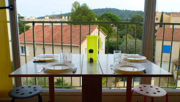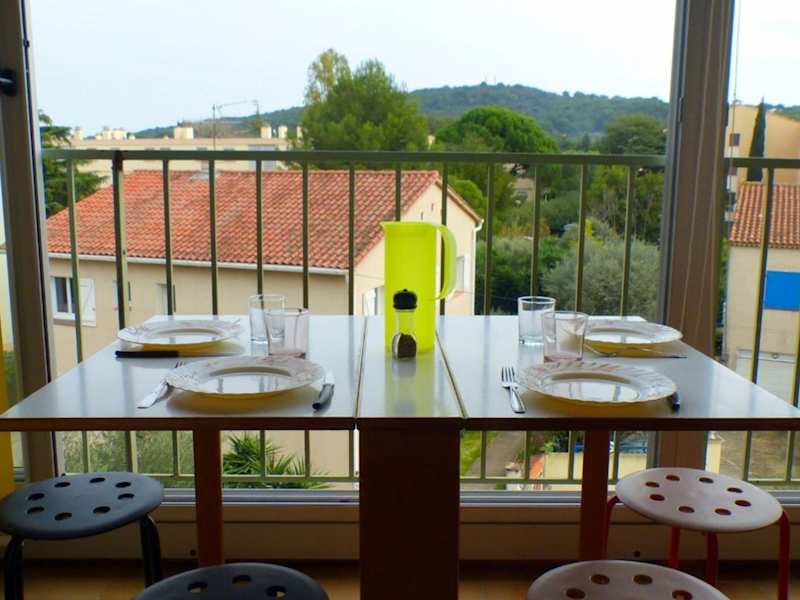 Charming studio with balcony in Sanary-sur-Mer bietet einen Balkon mit Stadtblick. Die Unterkunft ist modern eingerichtet und ideal für Ferien in der Provence.