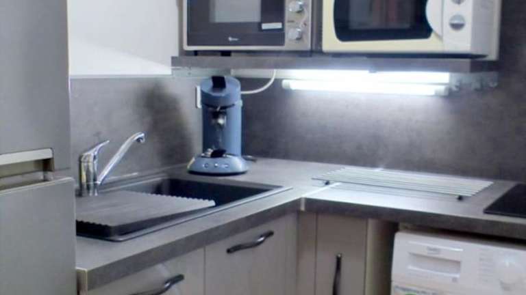 Die Küche ist ausgestattet mit einem Kühlschrank, einem Ofen, einer Mikrowelle sowie einer Kaffeemaschine, so dass eine Selbstversorgung gut möglich ist.