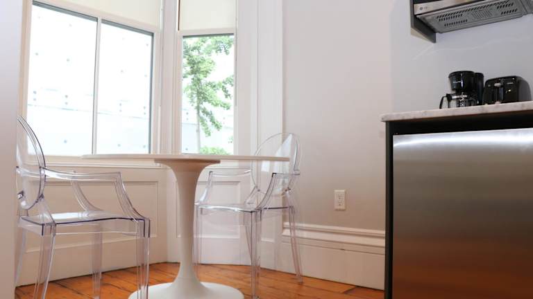 In jeder Wohneinheit steht eine voll ausgestattete Küchenzeile zur Verfügung, die zum Selbstkochen einlädt. Die Küchenzeile umfasst eine Herdplatte, einen Kühlschrank, eine Mikrowelle und eine Kaffeemaschine. Ein Esstisch ermöglicht das gemeinsame Essen in der Unterkunft. Es sind keine Verpflegungsmöglichkeiten vor Ort angegeben, jedoch bietet die zentrale Lage in Boston viele gastronomische Angebote in der unmittelbaren Umgebung.