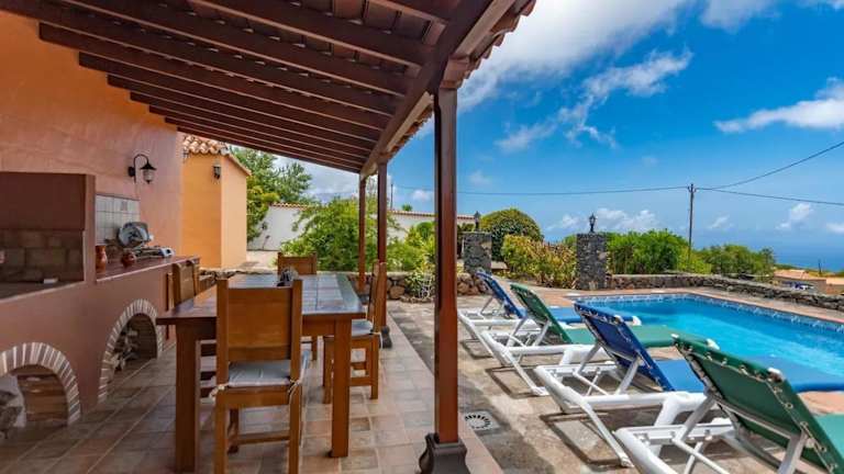 Die Charming villa with sea view in Puntagorda bietet einen ganzjährig geöffneten Aussenpool mit herrlichem Poolblick. Die Villa ist klimatisiert und umfasst 2 Schlafzimmer sowie eine gemütliche Sitzecke und einen TV.