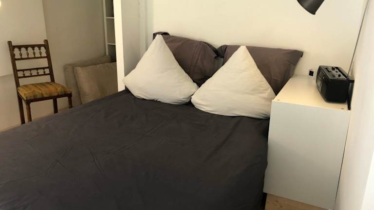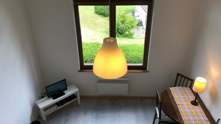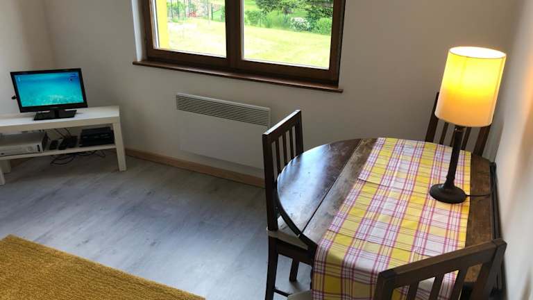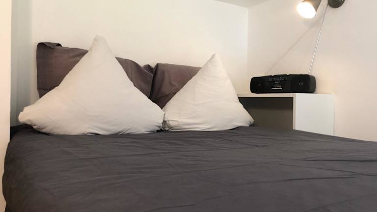 Die Ferienwohnung umfasst 1 Schlafzimmer und ein Wohnzimmer. Eine voll ausgestattete Küchenzeile mit Kühlschrank und Kaffeemaschine steht zur Verfügung. Das Badezimmer ist mit einer Dusche und einem Haartrockner ausgestattet. Handtücher und Bettwäsche werden bereitgestellt.