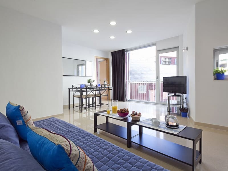 In den geräumigen Apartments sind Küchen mit Elektroherd, Backofen, Kaffeemaschine und Kühlschrank vorhanden, sodass eine Selbstverpflegung möglich ist. In der Umgebung finden sich viele Cafés, Bars und Restaurants, insbesondere im Stadtteil Raval und an den Las Ramblas, welche nur einen kurzen Spaziergang entfernt sind.