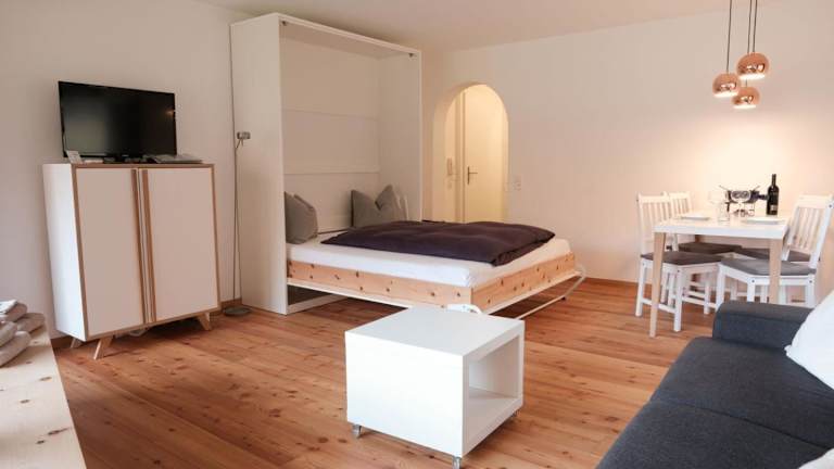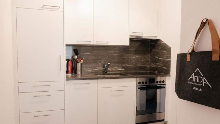 Die Ferienwohnung besteht aus einem Schlafzimmer und besitzt einen TV mit Kabelkanälen. Die voll ausgestattete Küche beinhaltet einen Kühlschrank, Geschirrspüler, Waschmaschine, Ofen sowie Herdplatte. Handtücher und Bettwäsche werden während des Aufenthalts zur Verfügung gestellt.