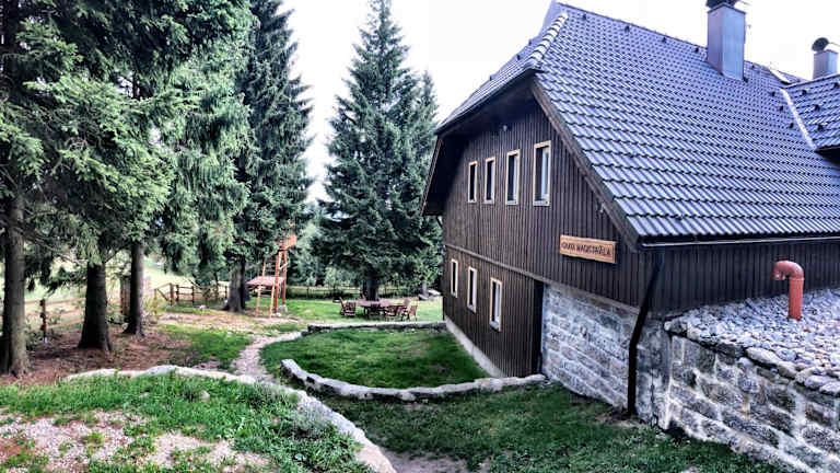 Chata Magistrála ist ein schön gelegenes Chalet, das über einen Garten sowie eine gemeinsame Lounge verfügt. Die Unterkunft bietet eine heimelige Atmosphäre und ist ideal für Gäste, die die Natur und sportliche Betätigung schätzen. Ausgestattet mit kostenlosem WLAN und einem kostenlosen Privatparkplatz, ist es ein perfekter Rückzugsort für Ferien im Schnee oder entspannte Tage im Grünen.