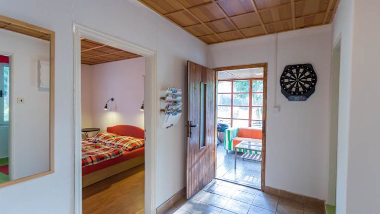 Die Unterkunft Chata Vranov befindet sich in der malerischen Region Südmähren in Vranov nad Dyjí, umgeben von schöner Natur und zahlreichen Freizeitmöglichkeiten. Die nächste Stadt mit historischen Sehenswürdigkeiten, wie der Sankt-Procopius-Basilika und der Altstadt von Telč, liegt 42 bzw. 49 km entfernt. Der Flughafen Brno ist 92 km entfernt.
