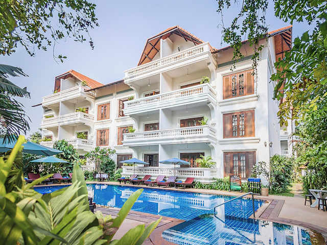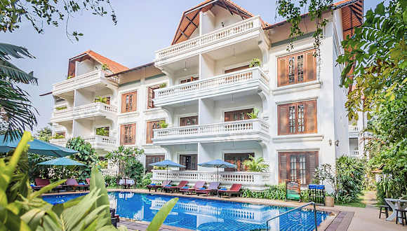 Das Chateau d'Angkor La Residence ist ein charmantes Boutique-Hotel im Herzen des alten französischen Viertels in Siem Reap. Freuen Sie sich auf komfortable Unterkünfte, einen Salzwasser-Außenpool und ein hauseigenes Restaurant. Die zentrale Lage ermöglicht es Ihnen, die Sehenswürdigkeiten der Stadt bequem zu erkunden.