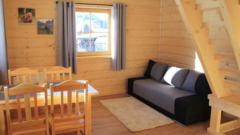 Das Chalet verfügt über 2 Schlafzimmer und eine Küchenzeile mit Kühlschrank und Mikrowelle. Zudem gibt es ein Badezimmer mit Dusche und Haartrockner. Handtücher und Bettwäsche werden bereitgestellt. Die Betten können entweder als Einzelbetten oder Doppelbetten arrangiert werden.