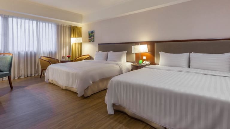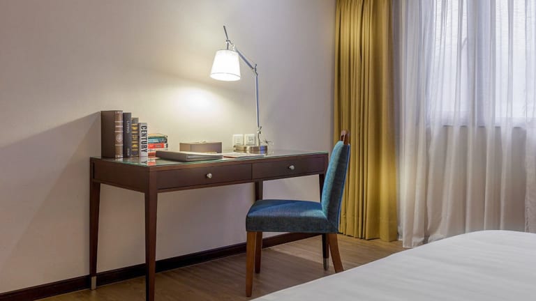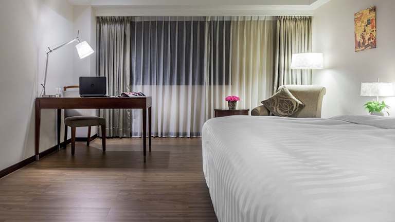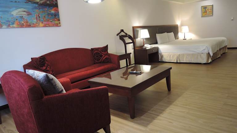 Die geräumigen Zimmer sind voll klimatisiert und wunderschön eingerichtet. Jedes Zimmer verfügt über einen komfortablen Sitzbereich mit einem Sessel, einen Arbeitsbereich und ein grosses Bad. Zusätzlich sind ein Kühlschrank und ein Wasserkocher vorhanden. Die Zimmer sind schallisoliert und bieten Zugang mit Schlüsselkarte.