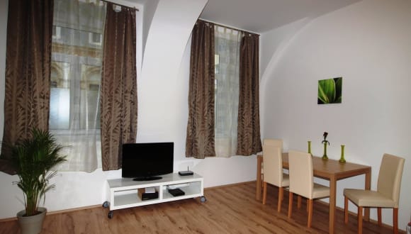 Durch seine zentrale Lage ist das Apartment ideal für alle, die Wien von seiner schönsten Seite erleben wollen. Im separaten Schlafzimmer steht ein gemütliches Doppelbett für Dich bereit. Im geräumigen Wohnzimmer findest Du einen Schrank, den Essbereich und eine Ausziehcouch für 2 weitere Personen. In 12 Gehminuten gelangst Du zur Sehenswürdigkeit "Prater", wo ein Vergnügungspark auf Dich wartet.