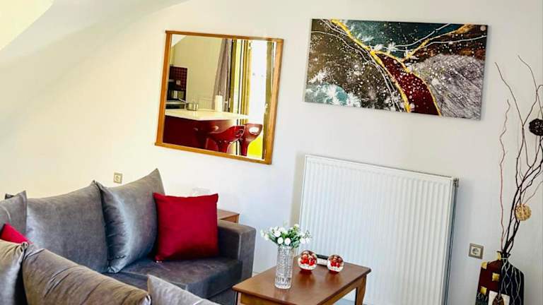 Die Maria's City Villa liegt in Argostoli und bietet einen herrlichen Blick auf das Meer. Sie befindet sich in unmittelbarer Nähe des Hafens von Argostoli, was bedeutet, dass Sie bequem zu Fuß dorthin gelangen können. In der Umgebung gibt es viele Restaurants, Bars und Geschäfte, in denen Sie die lokale Küche und Kultur genießen können. Das Museum für Geschichte und Volkskunde Korgialenio ist ebenfalls in der Nähe und bietet interessante Einblicke in die Geschichte der Region. Der Strand Fanari ist auch nicht weit entfernt und lädt zu entspannten Stunden am Meer ein.