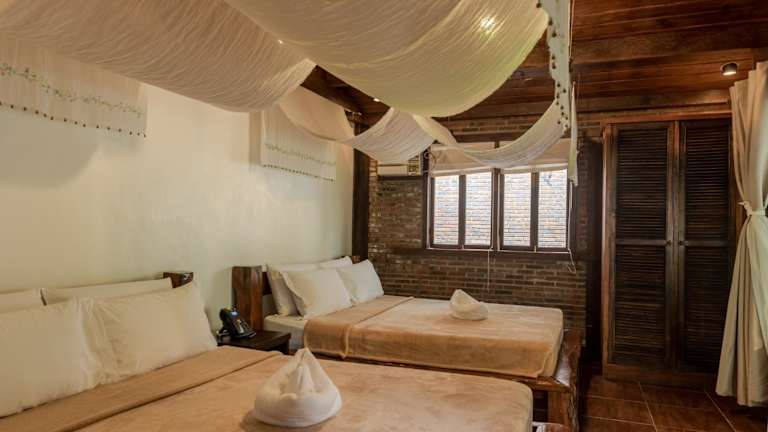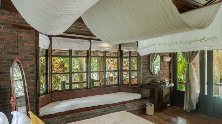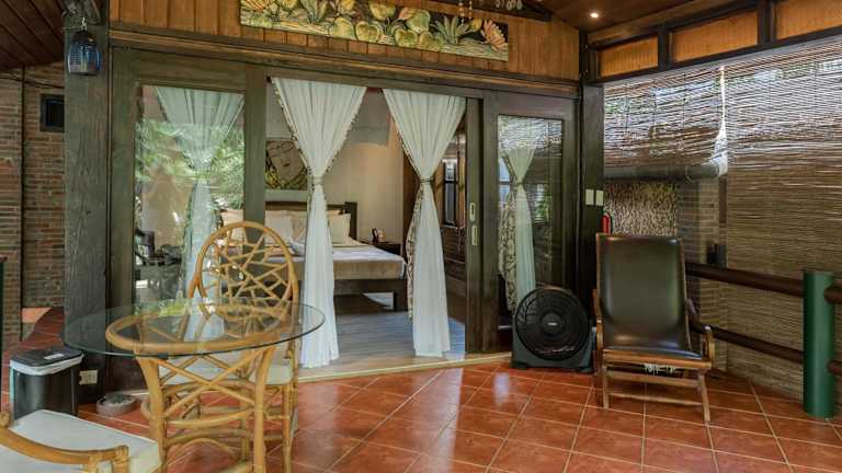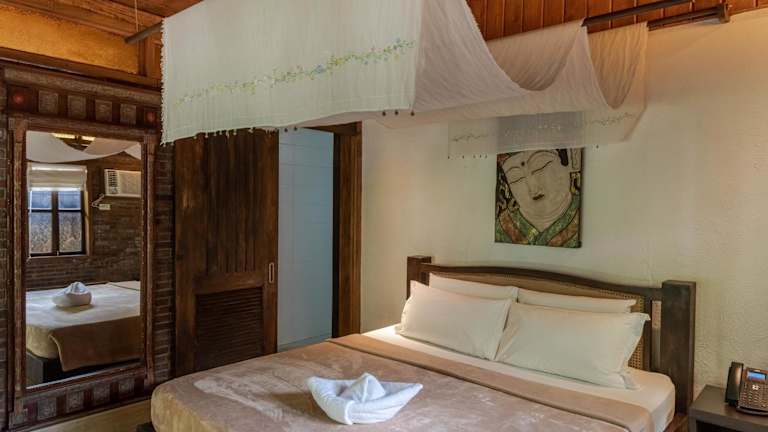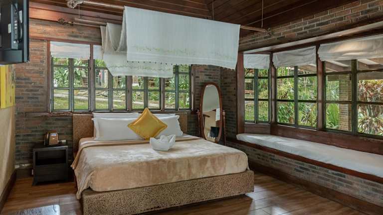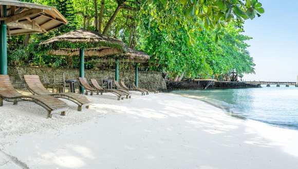 Die charmanten, freistehenden Ferienhäuser bieten eine heimelige Atmosphäre und sind mit Strohdächern sowie Holzböden gestaltet. Die Unterkunft verfügt über einen Aussenpool und einen schönen privaten Strandbereich, ideal zum Entspannen.