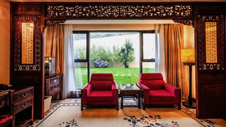 Die Zimmer im Chengde Imperial Palace Hotel sind geschmackvoll eingerichtet und bieten Ihnen einen authentischen chinesischen Stil. Die Rosenholzmöbel aus Laos und die Teppichböden aus Australien verleihen den Zimmern einen Hauch von Eleganz. Jedes Zimmer verfügt über ein bequemes Sofa, einen Schreibtisch, eine Minibar und einen Kühlschrank. Das eigene Bad ist mit einem wasserdichten Fernseher, einem Haartrockner, einem Bademantel und hochwertigen Pflegeprodukten ausgestattet.