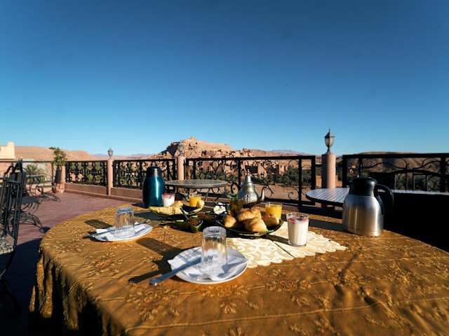 Das Restaurant im Chez Brahim vue panoramique serviert regionale Spezialitäten. Es sind zusätzliche Verpflegungsoptionen wie Kindermahlzeiten auf Anfrage vorhanden. Für spezielle Ernährungsbedürfnisse werden ebenfalls entsprechende Speisen angeboten.