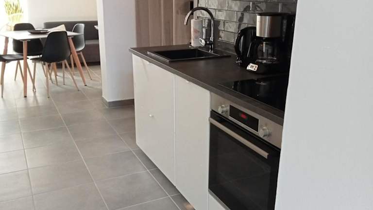Die Ferienwohnung umfasst ein Schlafzimmer, eine gut ausgestattete Küche mit Kühlschrank und Geschirrspüler, ein Wohnzimmer sowie einen Flachbild-TV. Kostenloses Wifi ist in der gesamten Unterkunft verfügbar, was Bequemlichkeiten für die Gäste bietet.