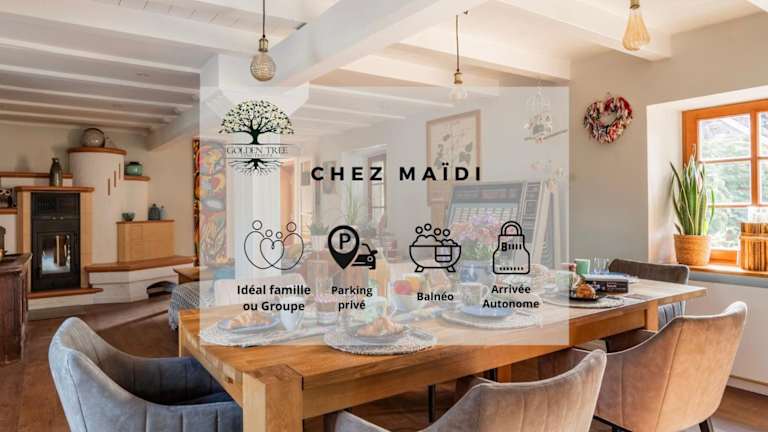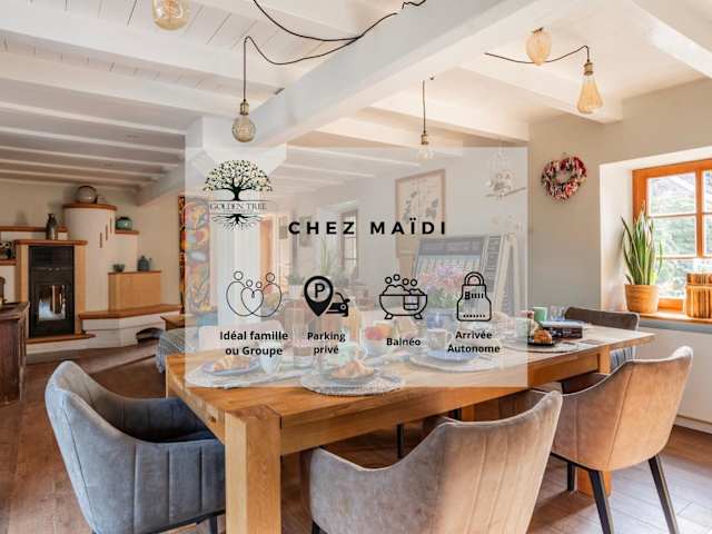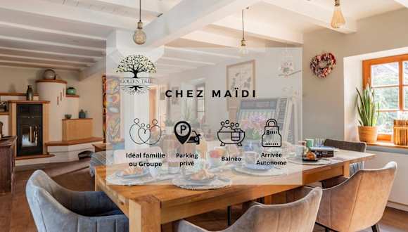 Chez Maidi-Balnéo ist ein Ferienhaus, das Übernachtungsmöglichkeiten mit einer Veranda/Pati und einem gemütlichen Garten bietet. Die Unterkunft verfügt über kostenfreies Wifi und einen Privatparkierplatz.