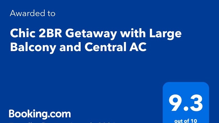 Die Unterkunft Chic 2BR Getaway with Large Balcony and Central AC bietet Übernachtungsmöglichkeiten in einer modernen Ferienwohnung mit einem grossen Balkon und zentraler Klimaanlage. Zu den Annehmlichkeiten zählen ein Aussenpool, eine Terrasse sowie kostenloses WLAN.