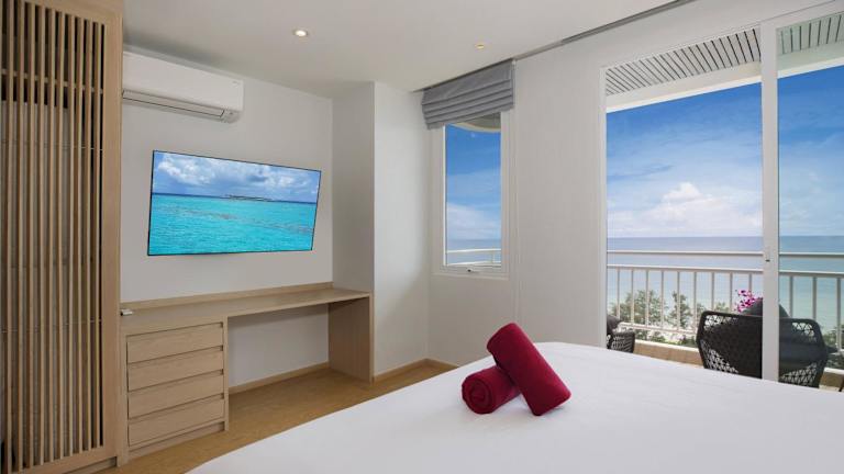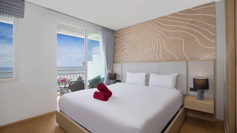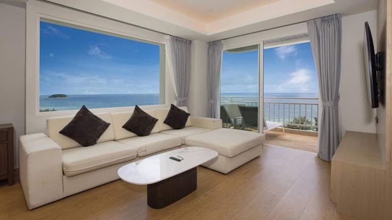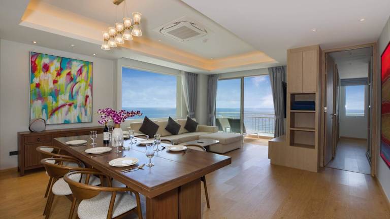 Chic Design & Full Seaview 2BR Karon Condo 16C, near Beach bietet einen Balkon mit Meerblick, einen Aussenpool sowie einen eigenen Strandbereich. Die Ferienwohnung zeichnet sich durch eine lichdurchflutete Einrichtung und eine helle Wohnatmosphäre aus.