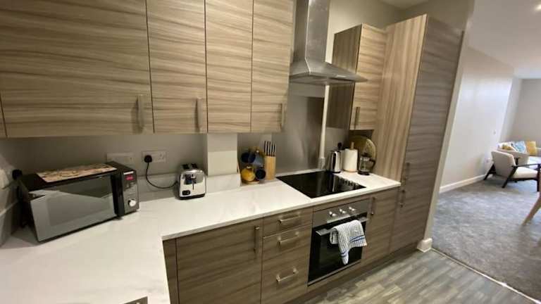 Die Unterkunft verfügt über 1 Schlafzimmer und 1 Badezimmer mit einer Dusche. Die Zimmer sind ausgestattet mit einem Flachbild-TV und einer Spielekonsole sowie einer voll ausgestatteten Küche.