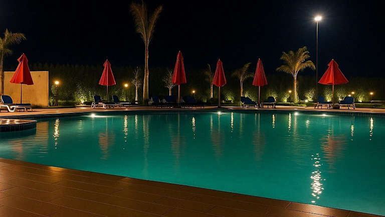 Das Chalet Chic Spacious Retreat befindet sich in Port Said und liegt nahe der Damietta Coastal Road. Die Umgebung bietet Blick auf den Garten und einen Pool.
