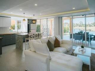 Die Ferienwohnung besteht aus 4 Schlafzimmern, einem Wohnzimmer und einer voll ausgestatteten Küche mit Kühlschrank und Wasserkocher. Es gibt drei Badezimmer, die mit einer Dusche und kostenlosen Pflegeprodukten ausgestattet sind. Handtücher und Bettwäsche werden gestellt. Die Unterkunft verfügt über Klimaanlage, schallisolierte Zimmer sowie eine Terrasse und einen Kinderspielplatz für Familien.