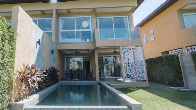 Die Chillax Luxury Pool Villa - Koh Chang biedt vielseitige Übernachtungsmöglichkeiten in einer modernen und heimeligen Ferienwohnung. Die Unterkunft verfügt über einen eigenen Strandbereich, einen Aussenpool, ein Fitnesscenter und einen gepflegten Garten, ideal für entspannte Ferien.