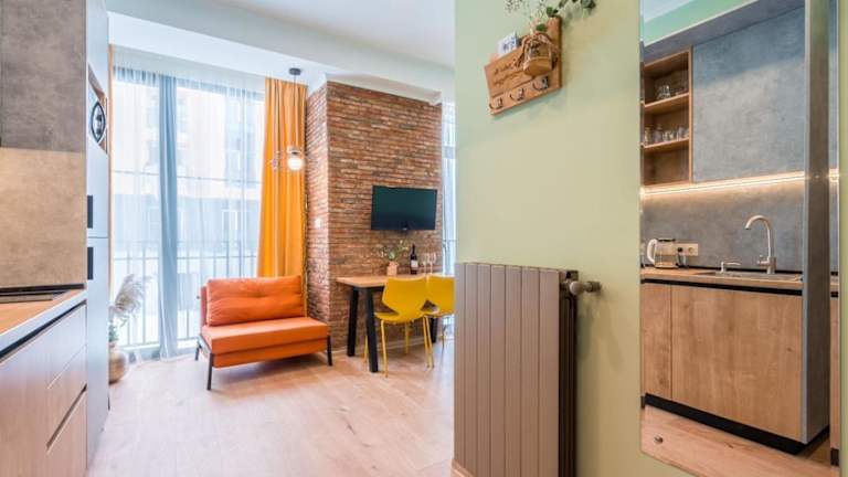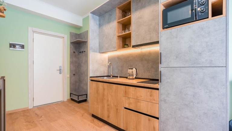 Die Ferienwohnung verfügt über 1 Schlafzimmer, ein Wohnzimmer und eine voll ausgestattete Küche mit einem Kühlschrank und einer Kaffeemaschine. Das Badezimmer ist mit einer Dusche und kostenlosen Pflegeprodukten ausgestattet. Handtücher und Bettwäsche werden bereitgestellt.