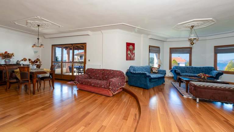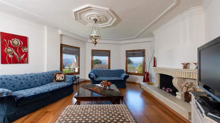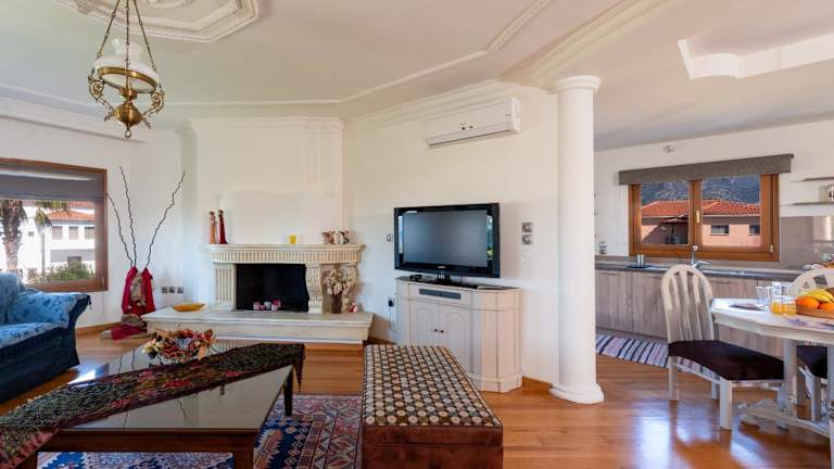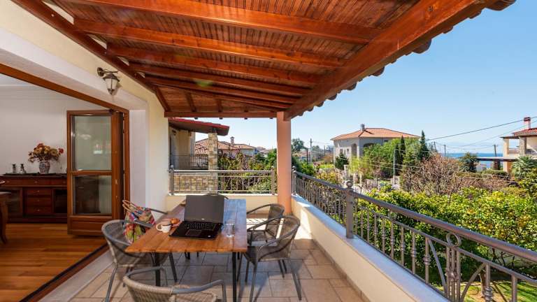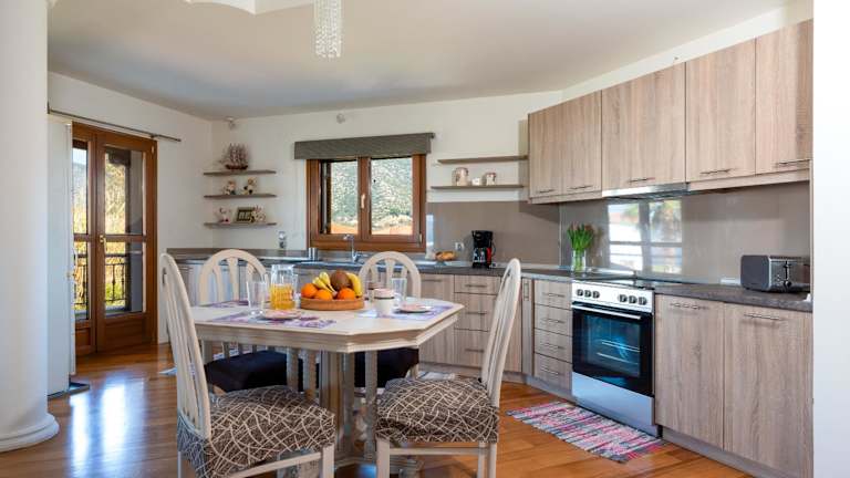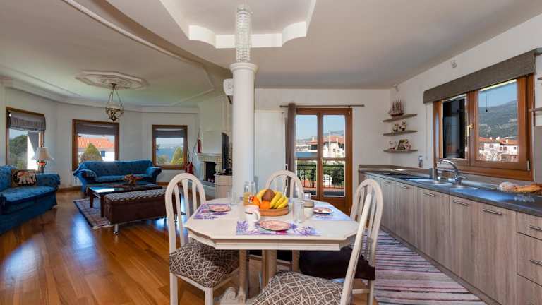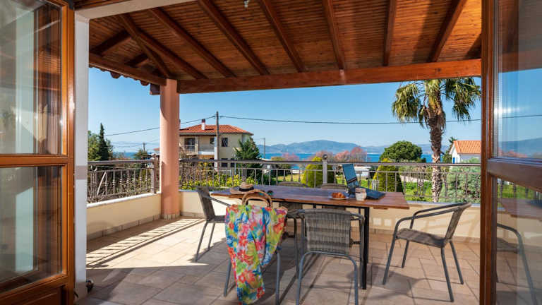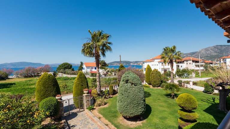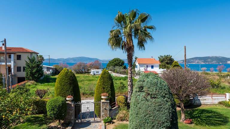 Christina's Twin Palm Trees House bietet eine Ferienwohnung mit Balkon und Meerblick. Darüber hinaus steht den Gästen ein Garten sowie eine Terrasse zur Verfügung. Die Ferienwohnung ist klimatisiert und bietet sowohl Berg- als auch Gartenblick.