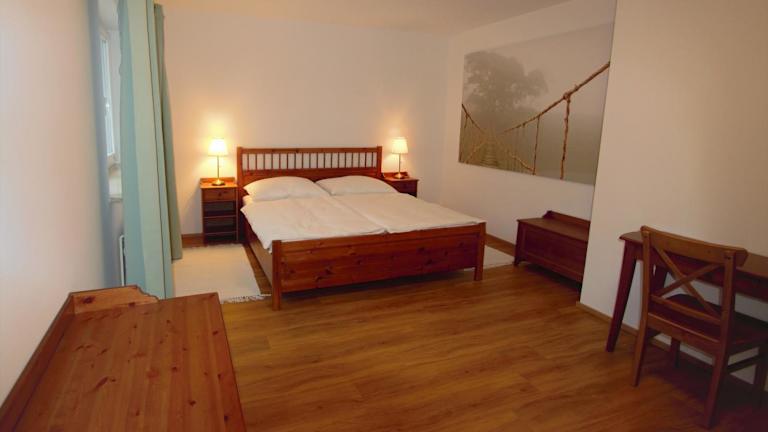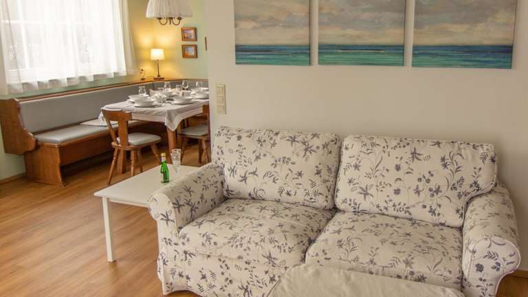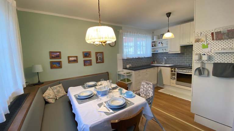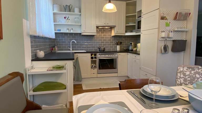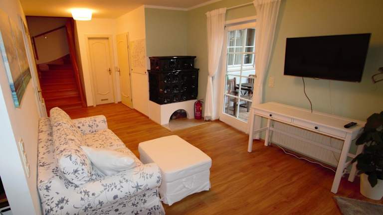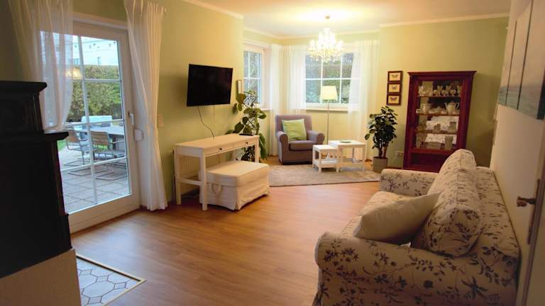Die Ferienwohnung besteht aus 2 Schlafzimmern, einem Wohnzimmer und einer voll ausgestatteten Küche mit Kühlschrank und Kaffeemaschine. Das Badezimmer ist mit einer Dusche und einem Haartrockner ausgestattet. Handtücher und Bettwäsche werden zur Verfügung gestellt.