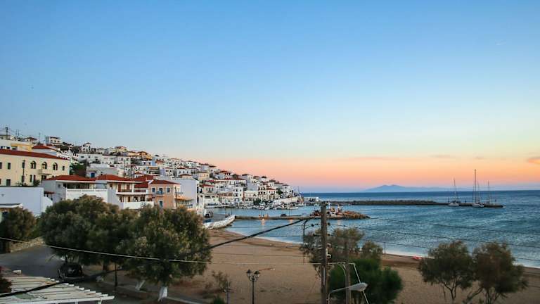 Das Chryssi Akti, Sure Hotel Collection befindet sich im Zentrum von Batsi, einem ruhigen Küstenort am Fuße eines Berges. Von hier aus haben Sie einen herrlichen Blick auf die Küste und können bequem zu Fuß zu den beliebtesten Geschäften, Cafés und Restaurants gelangen. Der Hauptstrand der Stadt liegt direkt vor der Haustür, so dass Sie jederzeit die Sonne und das Meer genießen können. Die Anreise zum Hotel vom Hafen aus ist einfach und bequem mit dem Taxi oder dem Bus möglich. Auf Anfrage hält der Bus sogar direkt vor dem Hotel.