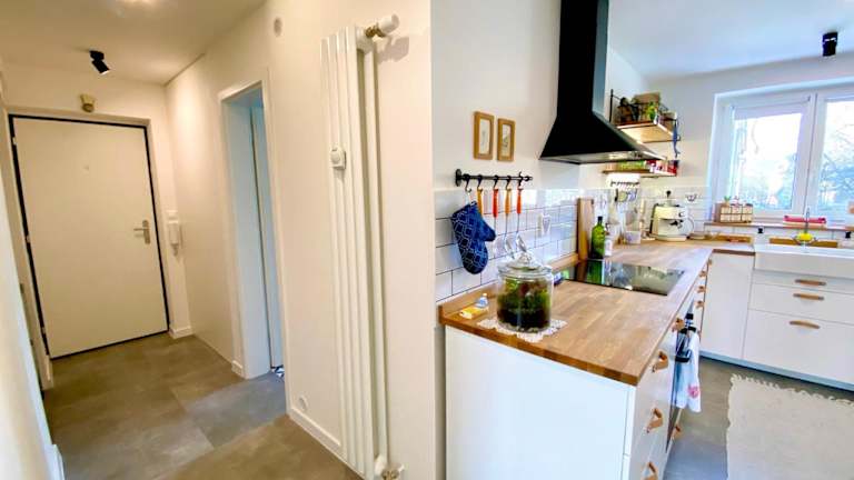 Die Ferienwohnung verfügt über eine voll ausgestattete Küche, in der Gäste ihre eigenen Mahlzeiten zubereiten können.