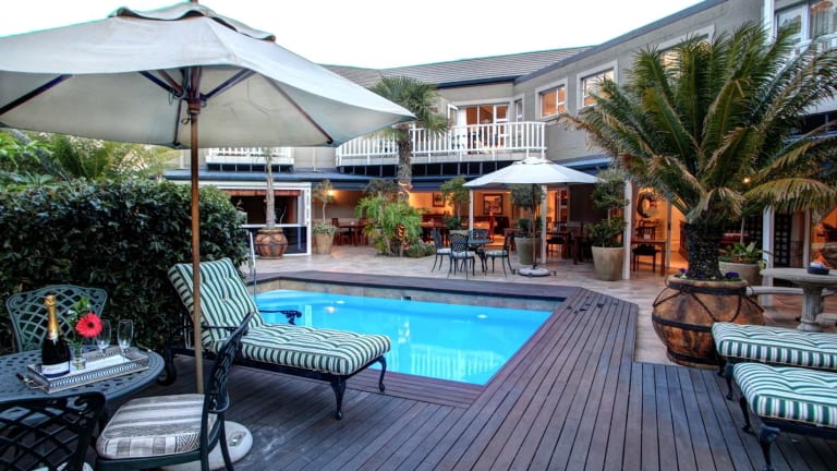 Das Cinnamon Boutique Guest House in Wilderness bietet Ihnen eine entspannte und luxuriöse Unterkunft am Fuße der Outeniqua-Berge. Genießen Sie den Außenpool und die Grillmöglichkeiten sowie den kostenlosen WLAN-Zugang. Die Zimmer sind stilvoll eingerichtet und bieten Annehmlichkeiten wie Sat-TV, Klimaanlage und eine Espressomaschine. Entspannen Sie am Pool oder erkunden Sie die Umgebung mit Aktivitäten wie Golfspielen und Radfahren. Der Strand Wilderness Beach ist nur 200 m entfernt und die Stadt Knysna erreichen Sie nach einer kurzen Fahrt.