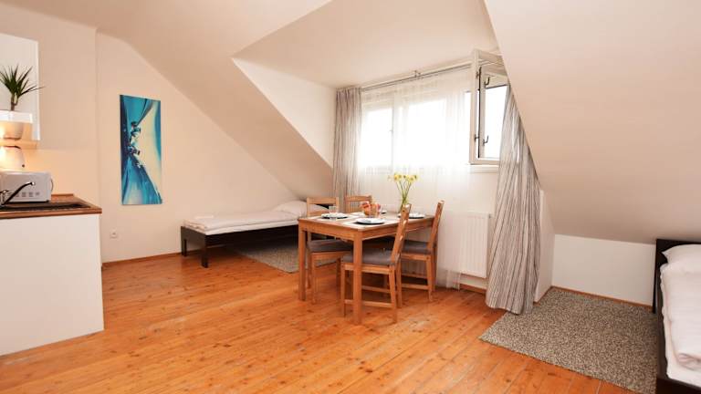 Die Wohneinheiten verfügen über einen Sitzbereich und eine voll ausgestattete Küche mit Kühlschrank, Mikrowelle und Herdplatte. Jedes Zimmer ist mit einem eigenen Badezimmer ausgestattet, das eine Dusche und kostenlose Pflegeprodukte bietet. Haartrockner sind ebenfalls vorhanden. Parkettböden verleihen den Zimmern eine heimelige Atmosphäre.