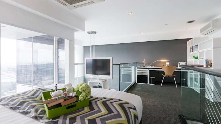 Die modernen Lofts verfügen über ein Wohnzimmer, einen Essbereich und eine gut ausgestattete Küche mit Kaffeemaschine und Herd. Jedes Loft hat einen Balkon mit Stadtblick. Zur Ausstattung gehören eine Klimaanlage, ein Safe, eine Minibar, ein Schreibtisch, ein Kühlschrank, eine Mikrowelle, ein Fernseher sowie Internetzugang. Ein Bügelset und Hausschuhe sowie Föhn und ein Telefon im Badezimmer sind vorhanden. Familien und Nichtraucherzimmer sind verfügbar.
