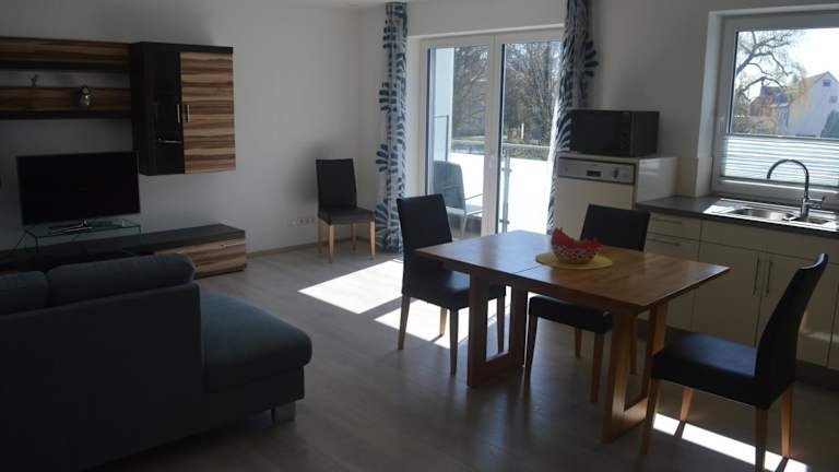 City-Apartment Bad Schussenried bietet eine heimelige Atmosphäre mit modernen Annehmlichkeiten. Die Ferienwohnung verfügt über einen eigenen Balkon mit Blick auf die Stadt, ideal für entspannende Stunden.