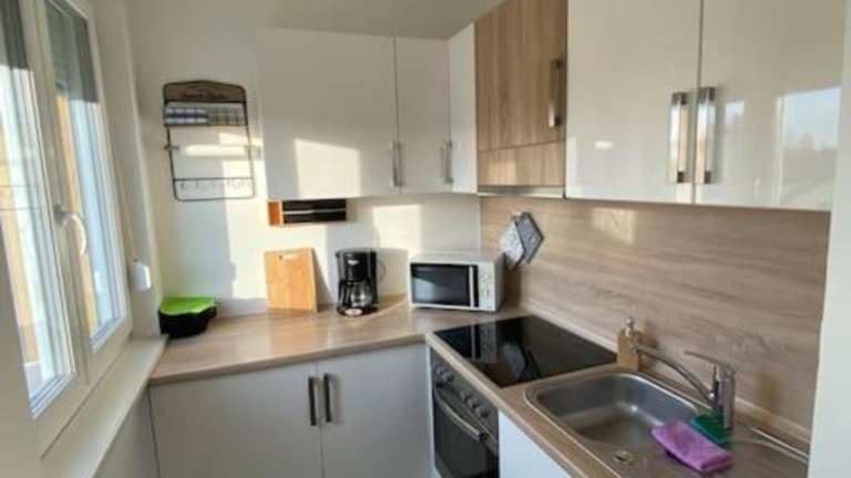 Die Ferienwohnung besteht aus 1 Schlafzimmer, einem Wohnzimmer, einer voll ausgestatteten Küche mit Kühlschrank und Kaffeemaschine sowie 1 Badezimmer mit Dusche und Haartrockner. Handtücher und Bettwäsche werden bereitgestellt.