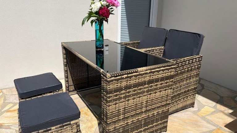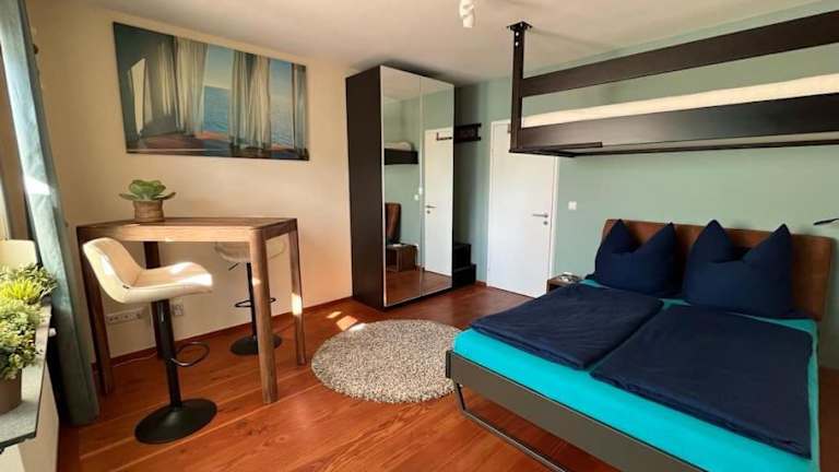 Die Ferienwohnung umfasst ein Schlafzimmer und ein Badezimmer. Zur Ausstattung gehören Bettwäsche, Handtücher, ein Flachbild-TV, ein Essbereich, eine voll ausgestattete Küche und eine Terrasse. Handtücher und Bettwäsche können gegen Aufpreis bereitgestellt werden.