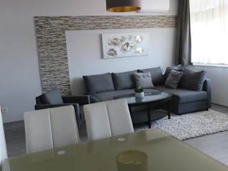 Die Ferienwohnung umfasst zwei Schlafzimmer, ein Wohnzimmer sowie eine voll ausgestattete Küche mit Kühlschrank und Kaffeemaschine. Ein Badezimmer mit Dusche und Haartrockner ist vorhanden. Handtücher und Bettwäsche werden bereitgestellt. Die Unterkunft bietet klimatisierte Zimmer und ist als Nichtraucherunterkunft konzipiert.