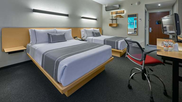 Die Zimmer sind modern eingerichtet und klimatisiert. Sie bieten Annehmlichkeiten wie ein Doppelbett, einen Schreibtisch, einen Kühlschrank, eine Tee-/Kaffeemaschine sowie kostenfreies WLAN. Jedes Zimmer verfügt über ein eigenes Badezimmer mit Dusche oder Badewanne, Haartrockner und Kosmetikartikeln. Familien- und Nichtraucherzimmer sind ebenfalls verfügbar.
