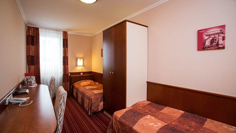 Das City Hotel bietet seinen Gästen 22 Zimmer auf 4 Etagen, die mit einem Aufzug erreichbar sind. Die Zimmer sind komfortabel eingerichtet und verfügen über eine Klimaanlage, eine individuell steuerbare Heizung, ein Doppelbett, einen Safe und eine Minibar. Zur Ausstattung gehört auch eine Kochnische mit Kühlschrank, Minikühlschrank, Mikrowelle und Tee-/Kaffeemaschine. Zur weiteren Ausstattung gehören ein Telefon mit Direktwahl, ein TV-Gerät mit Satelliten-/Kabelempfang, ein Radio und kostenfreies WLAN. Die Badezimmer sind mit Dusche oder Badewanne und einem Haartrockner ausgestattet. Es gibt auch rollstuhlgerechte Zimmer und Nichtraucherzimmer.
