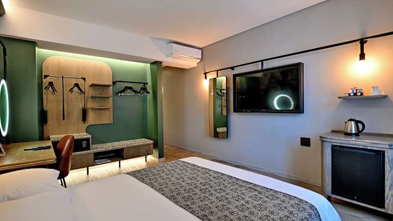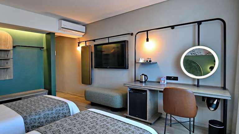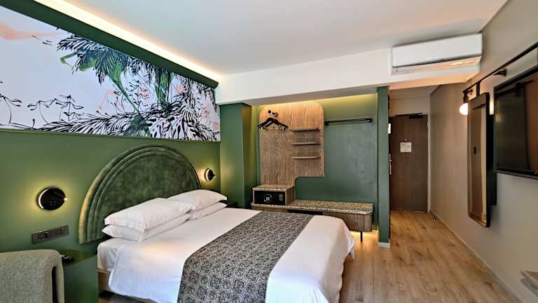 Die Zimmer sind klimatisiert und verfügen über einen Balkon oder eine Terrasse mit Stadtblick. Sie sind ausgestattet mit einem Doppelbett, einem Safe, einem Schreibtisch, einem Minikühlschrank und einer Tee-/Kaffeekochmöglichkeit. Weitere Annehmlichkeiten sind ein Telefon, ein TV-Gerät, ein Radio und kostenloses Wifi. Die Badezimmer sind mit einer Dusche und einer Badewanne ausgestattet und bieten Haartrockner sowie kostenlose Kosmetikartikel. Das Hotel bietet Familien-, Nichtraucher- und Raucherzimmer, sowie rollstuhlgerechte Unterkünfte.