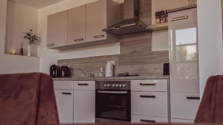Die Ferienwohnung besteht aus einem Schlafzimmer, einem Wohnzimmer und einer voll ausgestatteten Küche, die über einen Kühlschrank und eine Kaffeemaschine verfügt. Zudem beinhaltet die Unterkunft ein Badezimmer mit Dusche und Haartrockner. Handtücher und Bettwäsche werden bereitgestellt. Die Zimmer sind schallisoliert und bieten Beheizung.