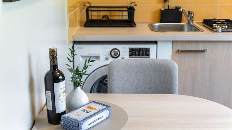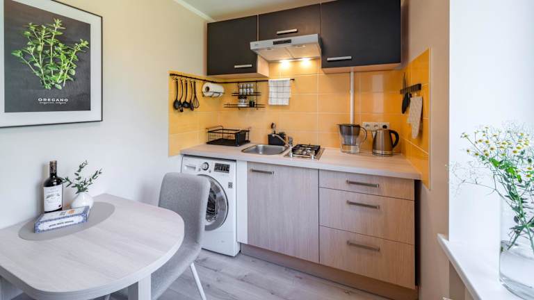 Das Apartment besteht aus einem Schlafzimmer, einem Wohnzimmer und einem Badezimmer mit Dusche. Zusätzlich bietet die Wohnung eine gut ausgestattete Küche mit Kühlschrank und Mikrowelle. Eine Terrasse mit Gartenmöbeln ergänzt die komfortable Ausstattung. Handtücher und Bettwäsche werden zur Verfügung gestellt.